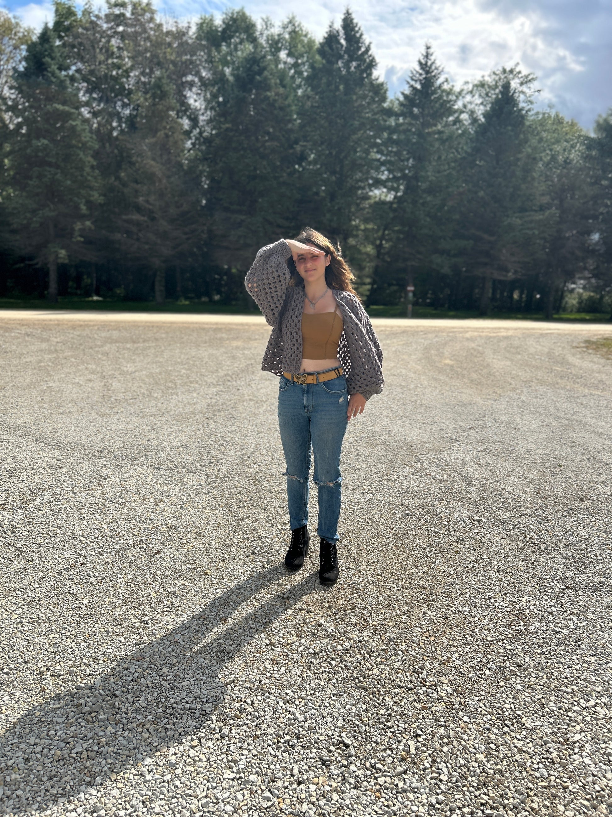 Spice up your closet with one of our crocheted hexagon cardigan.