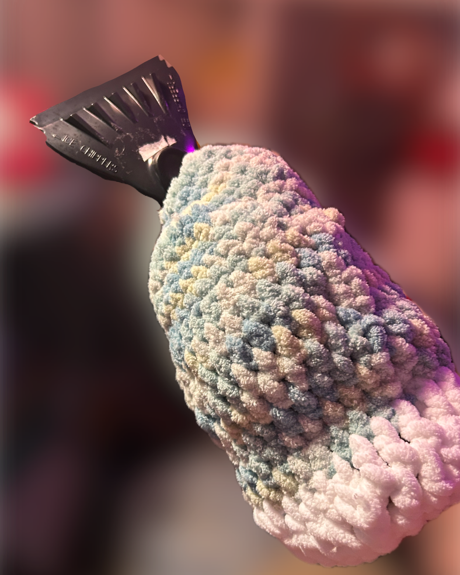 Introducing our crochet ice scraper mitt, the perfect solution for keeping your hands warm and cozy while clearing snow and ice from your car. No more frigid fingers, just stylish and practical winter accessorizing. Stay warm and snow-free with our one-of-a-kind crochet mitt!