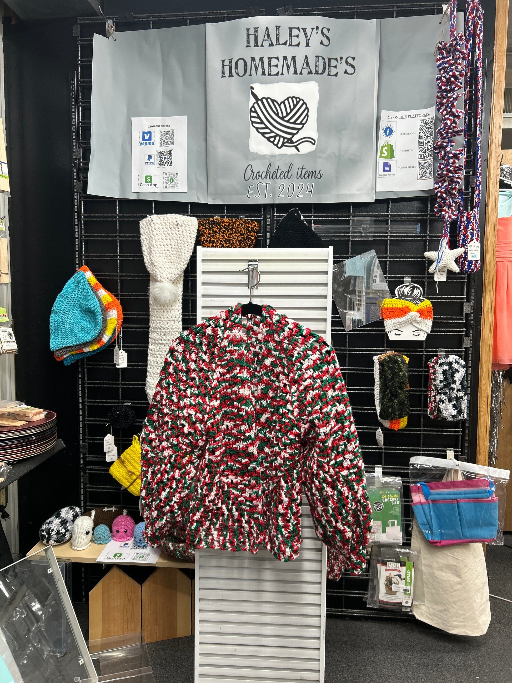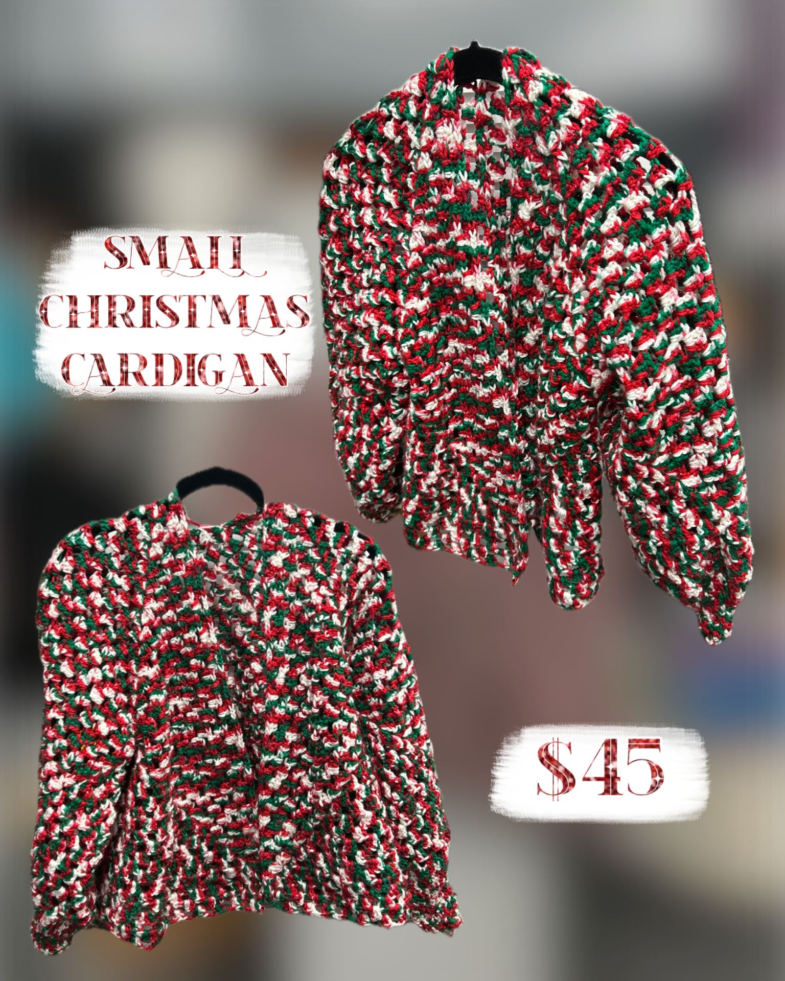 Get cozy this holiday season with our adorable Crocheted Small Christmas Cardigan! Perfect for spreading holiday cheer, this cardigan is size small and entirely handmade. Snuggle up in style and be the talk of the party!